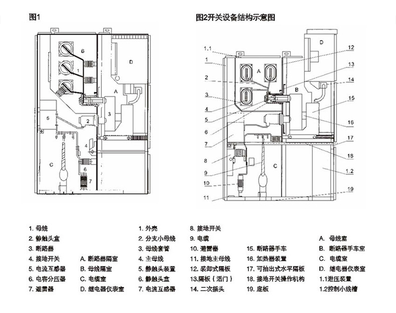 柜體分為手車室、母線室、電纜室、繼電器及儀表室。手車室后部裝有接地的金屬活門,手車抽出后,活門自動關(guān)閉;二次觸頭,隨手車進(jìn)出實現(xiàn)通、斷;母線室與其它室隔開;電纜室位于后下部,便于敷設(shè)進(jìn)出線電纜,底部裝有接地母線;繼電器及儀表室位于柜的前上部。