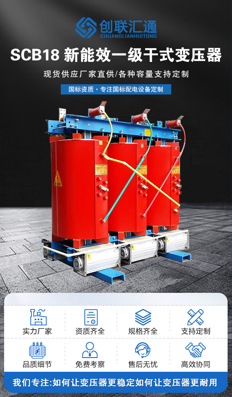SCB18干式變壓器是符合《GB20052-2020電力變壓器能效限定值及能效等級(jí)國(guó)家標(biāo)準(zhǔn)》一級(jí)能效標(biāo)準(zhǔn)的新型號(hào)干式變壓器,是節(jié)能電力變壓器。SCB18變壓器相較SCB14變壓器空載損耗降低20%,負(fù)載損耗保持不變。
