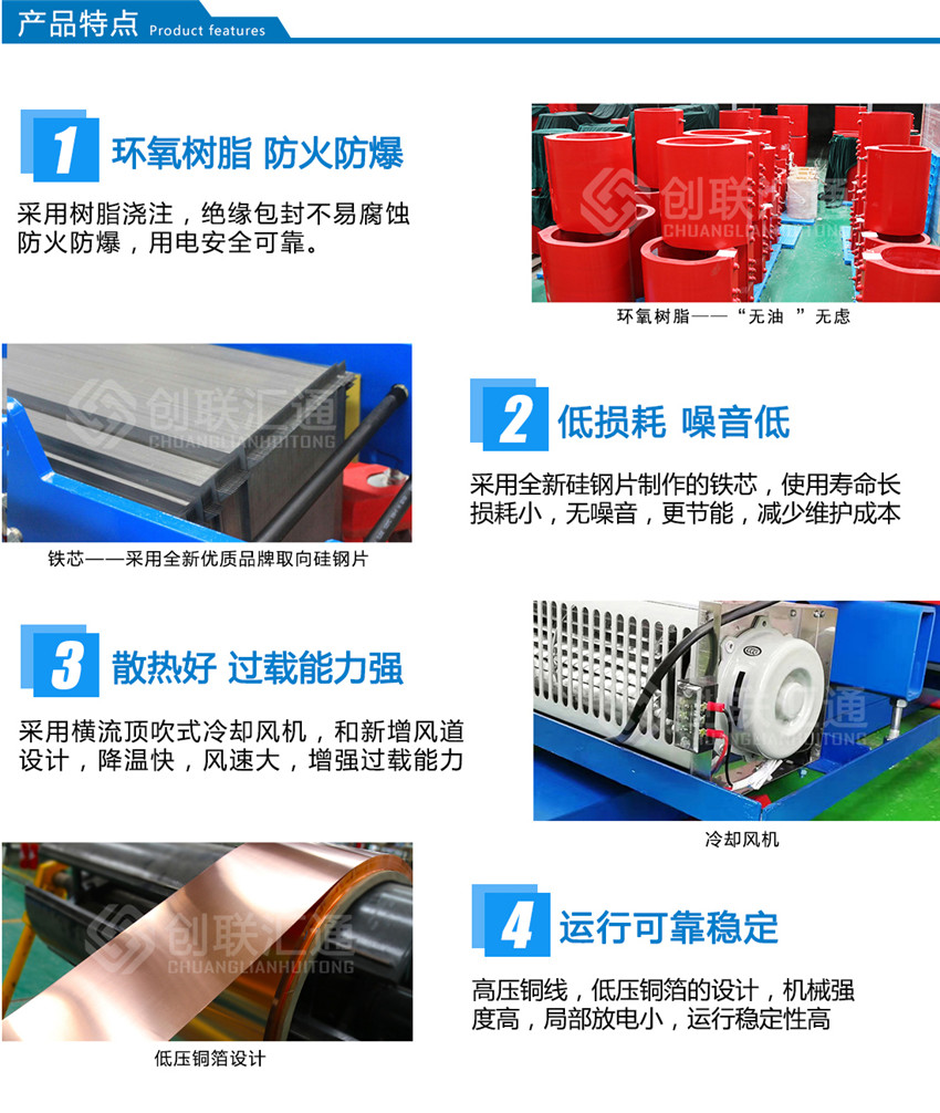 3、結(jié)構(gòu)堅(jiān)固,SCB11干式變壓器繞組采用環(huán)氧樹(shù)脂澆注固化成型,機(jī)械強(qiáng)度高,抗短路能力強(qiáng)。