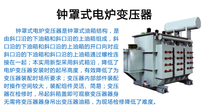 電爐變壓器斜鐘罩式油箱結(jié)構(gòu),是由斜口沿的下油箱和斜口沿的上油箱組成,斜口沿的下油箱和斜口沿的上油箱的開(kāi)口向?qū)?yīng),斜口沿的下油箱和斜口沿的上油箱通過(guò)螺栓連接在一起;本實(shí)用新型采用斜式箱沿,降低了電爐變壓器安裝時(shí)的起吊高度,有效降低了為變壓器裝配時(shí)場(chǎng)所要求;變壓器內(nèi)部部件裝配時(shí)操作空間較大,裝配組件靈活、簡(jiǎn)易;變壓器在檢修時(shí),吊起斜箱蓋即可觀察變壓器器身,無(wú)需將變壓器器身吊出變壓器油箱,為現(xiàn)場(chǎng)檢修降低了難度。