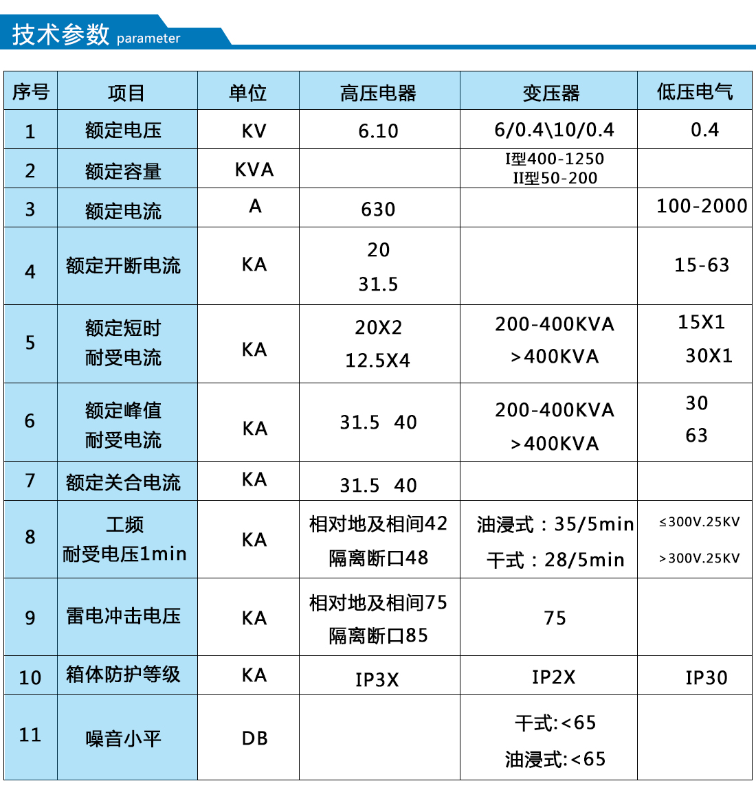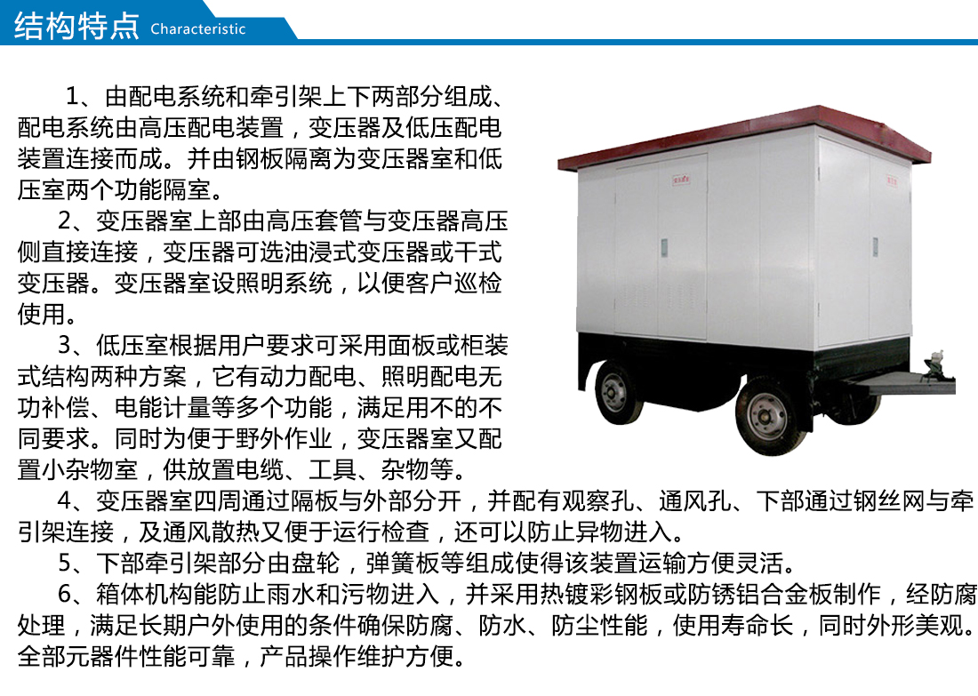 移動(dòng)式箱式變電站適用于住宅小區(qū)、城市公用變、繁華鬧市、施工電源等,用戶(hù)可根據(jù)不同的使用條件、負(fù)荷等級(jí)選擇箱式變。