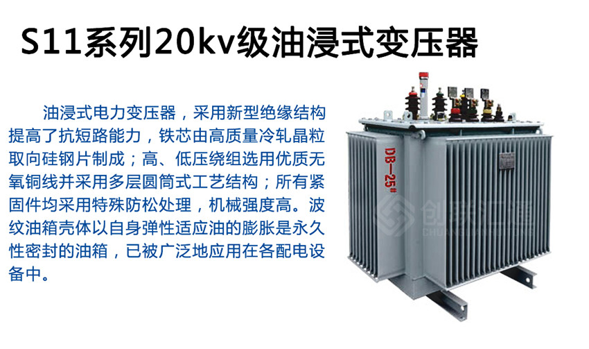 S11系列20kv級(jí)油浸式變壓器為配電網(wǎng)絡(luò)與工礦企業(yè)供配電系統(tǒng)中的重要設(shè)備,在工礦企業(yè)、農(nóng)業(yè)和民用建筑中廣泛使用,也可用于石油、化工行業(yè)中多油污、多化學(xué)物質(zhì)的場(chǎng)所。使用環(huán)境:戶外/戶內(nèi)使用,海拔不超過(guò)1000m。